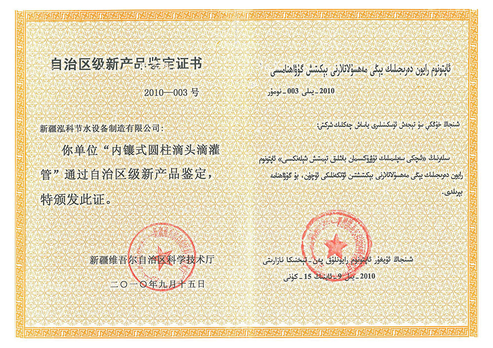 自治區(qū)級新產(chǎn)品鑒定證書